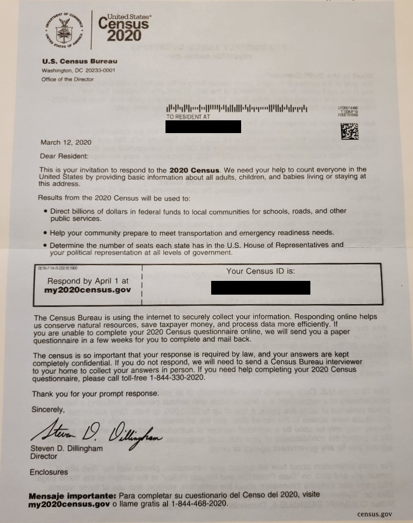 Got My Us Census 2020 Letter In Mail Today Absolutely No